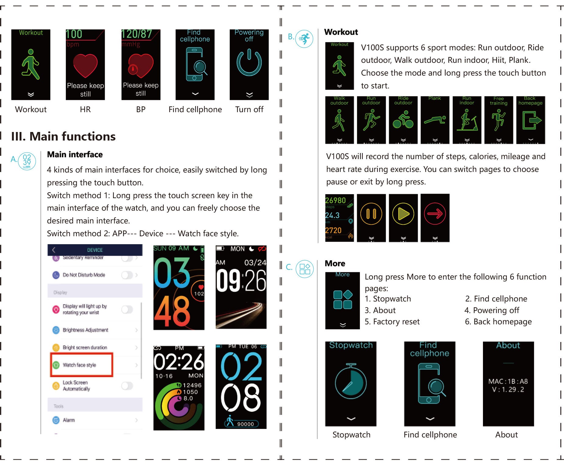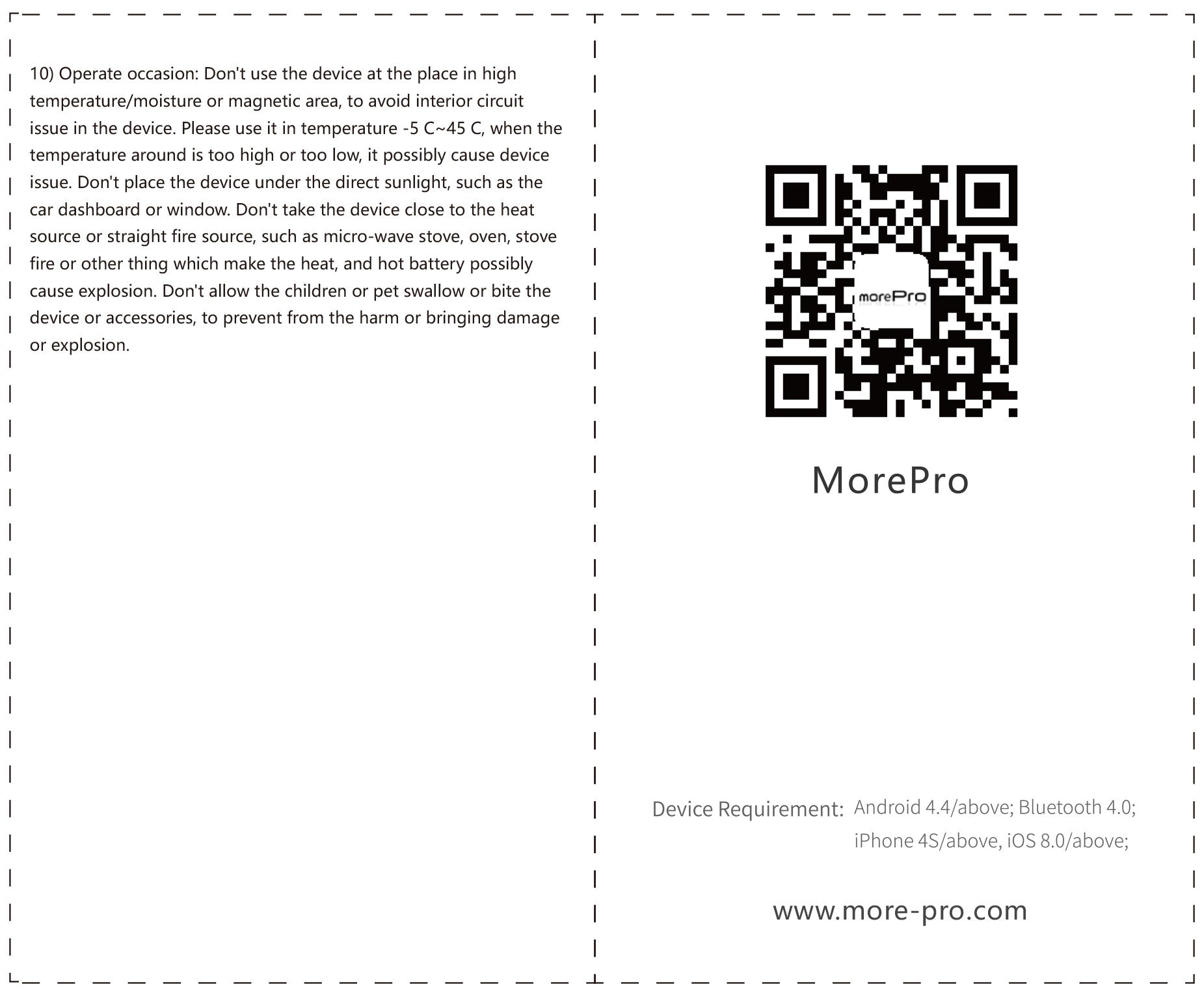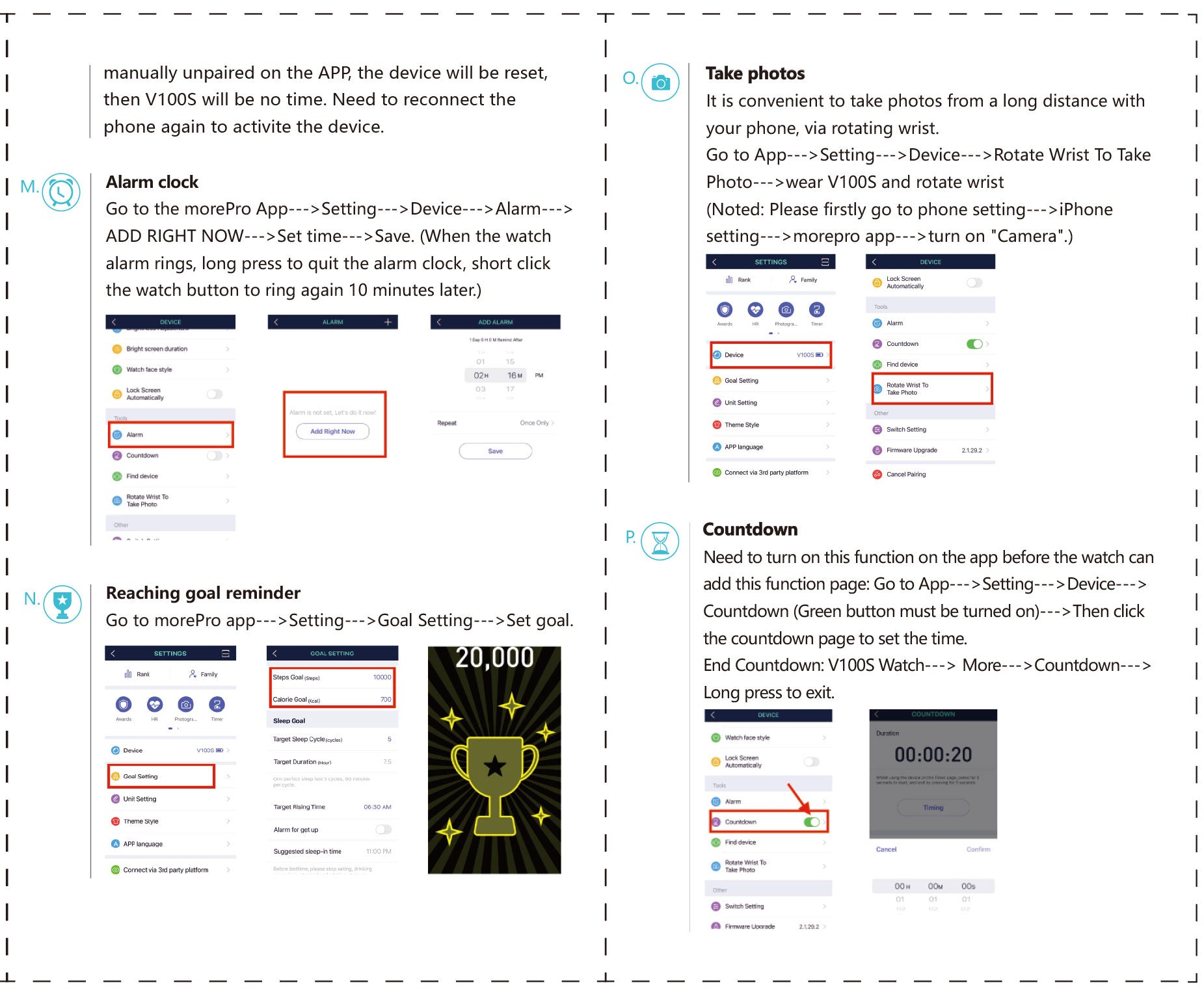 A:The device can’t pair to the phone’s Bluetooth directly. You can download the MorePro app on Google Play or App Store. Turn on the Bluetooth and the GPS/location while connection, go to MorePro app-->setting-->search the device-->find “V100S”model to connect.