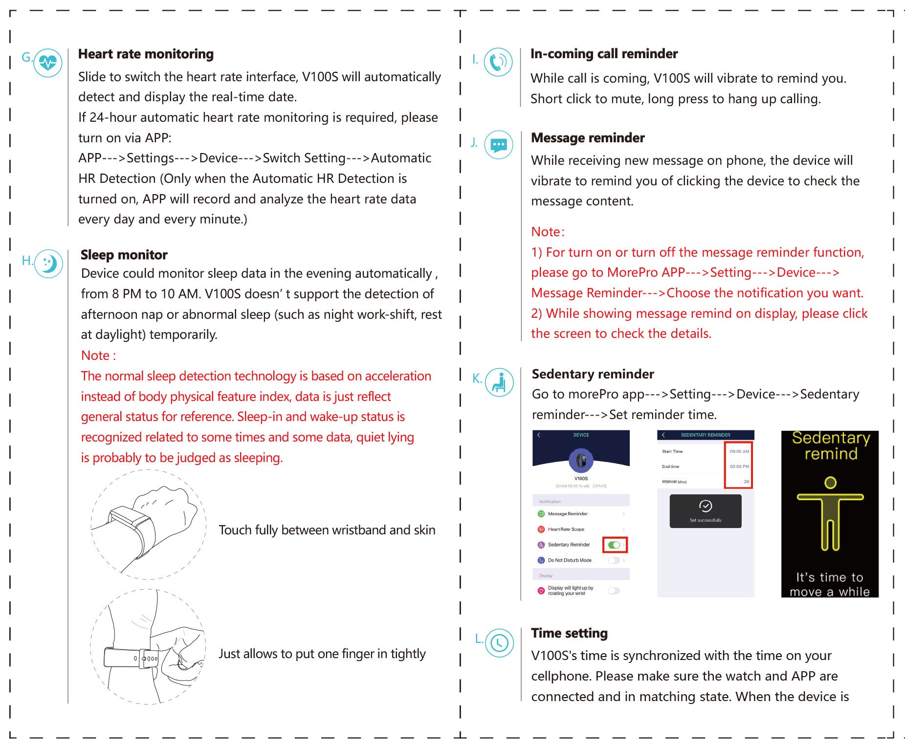 A:Please go to the MorePro app-->Setting-->Device-->Message Remind, then you can turn on the call, message and app notifications. Please don’t forget to allow the notification permission of the phone.